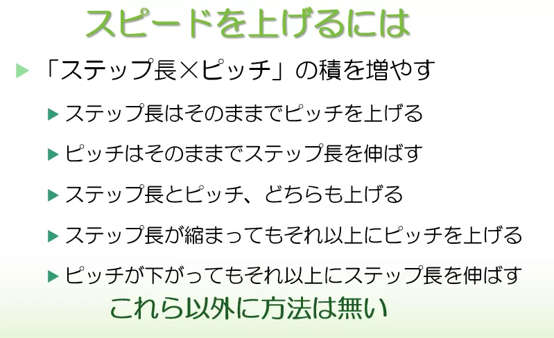 では、ステップ長とピッチをどのようにすれば今以上のスピードを出せるようになるか?