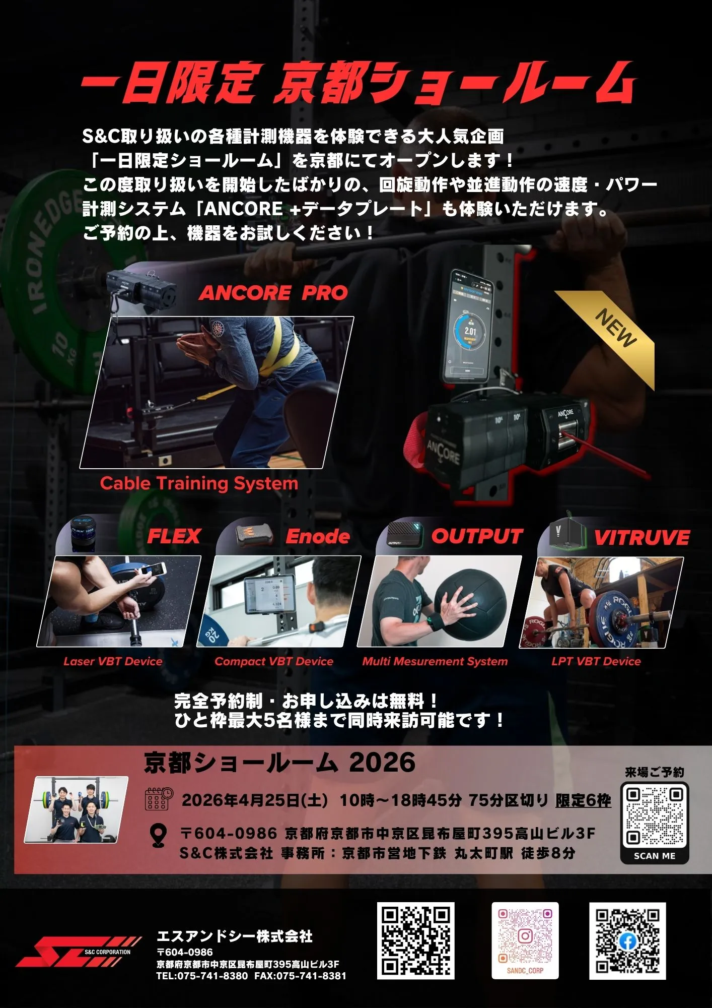 そして今回は、今話題の「回旋動作・並進動作の速度やパワー計測ができるANCORE PRO+データプレート」も体験いただけます!野球やゴルフ、テニス選手の指導をされる方には特にオススメの機器です!