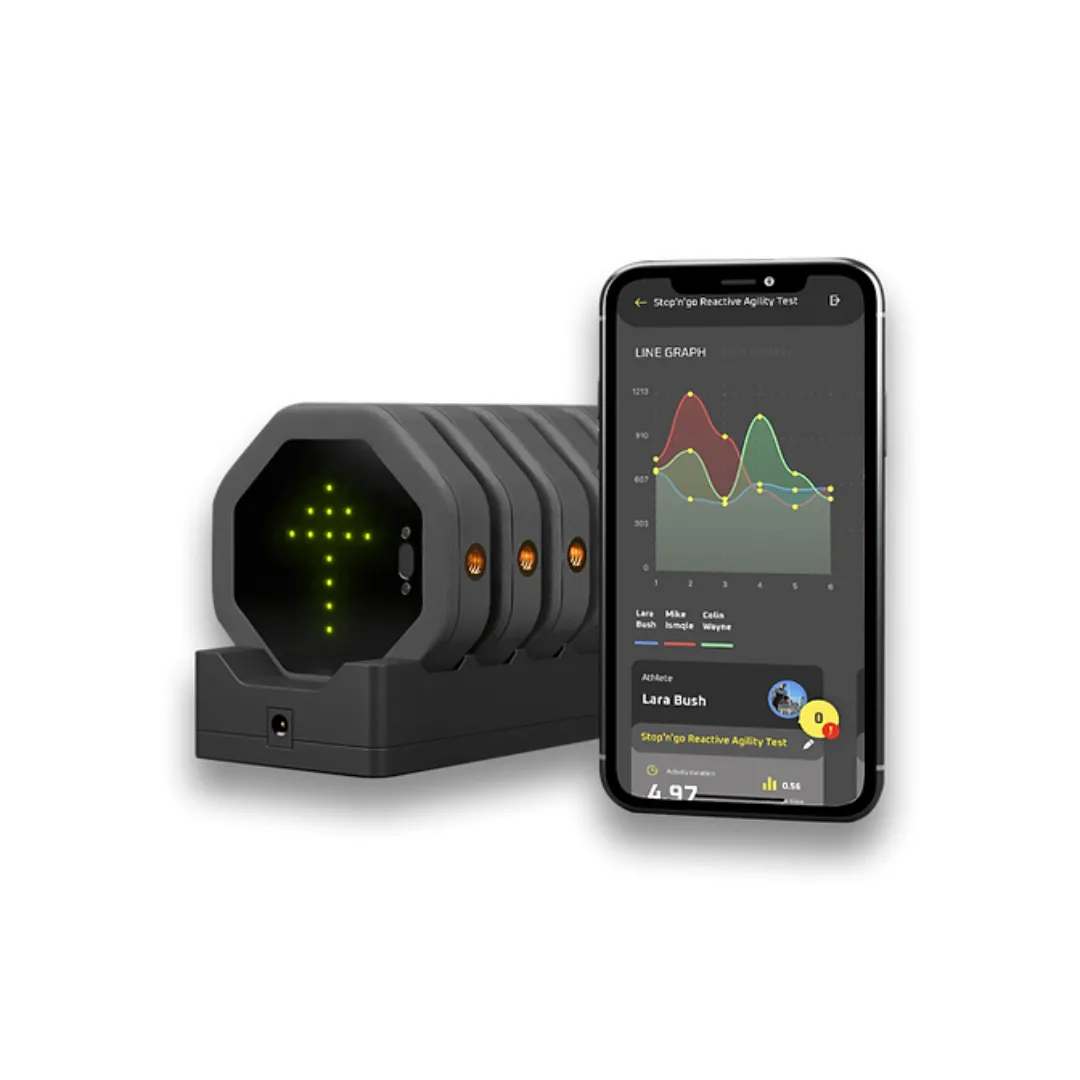 現場で利用可能なテクノロジーは日進月歩で進歩し続けています。かつて全身反応時間を測定するシステムとして使用されていたのは何の変哲もない1色のライトとマットスイッチを組み合わせただけのものでした。しかし現在のWittyやWitty SEM、あるいはSportreactといったシステムは、光電センサーを用いた自由に複数台を設置できるタイミングゲートと、ワイヤレスに連動した各種の色や形や文字や数字の視覚信号提示装置をさまざまな距離間隔や角度で組み合わせ、提示時間やタイミングや回数などを簡単に設定できるようになっています。さらに最新式のレーダーを用いたLedsReactというシステムは、ゲートや光刺激装置を設置することなく、1台の装置だけで反応信号の提示と反応時間、移動時間、スピードをリアルタイムで計測することができます。