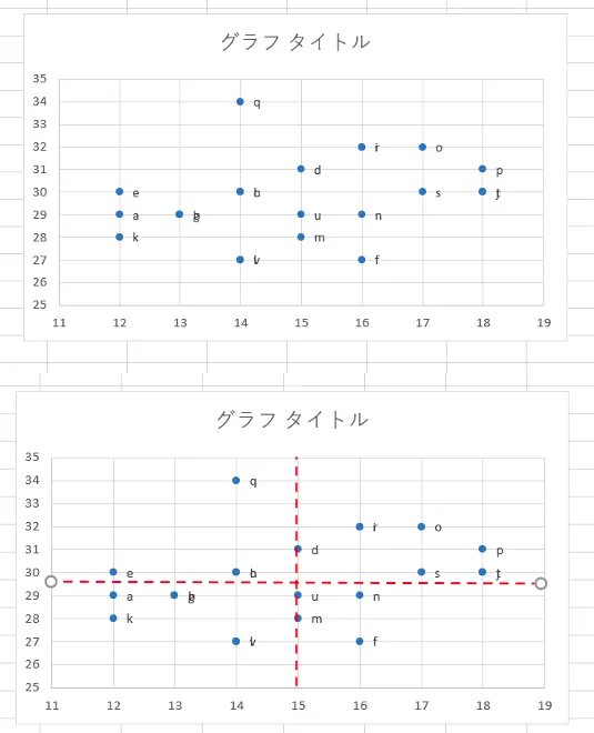 エクセルの散布図で作成する4象限マトリクス