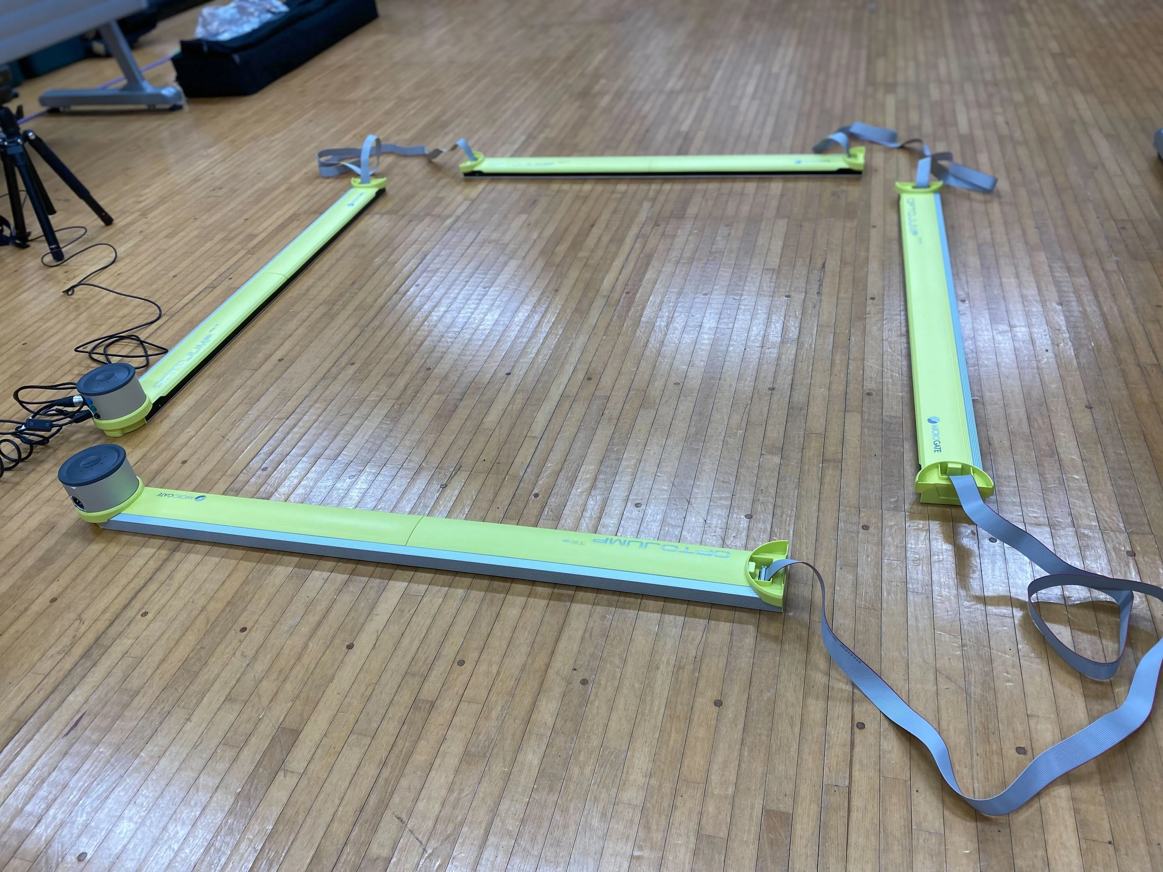 OptoJumpバーセンサーを縦横に配置することによって、ジャンプの着地位置のバラつきを1㎝単位で計測することができます。