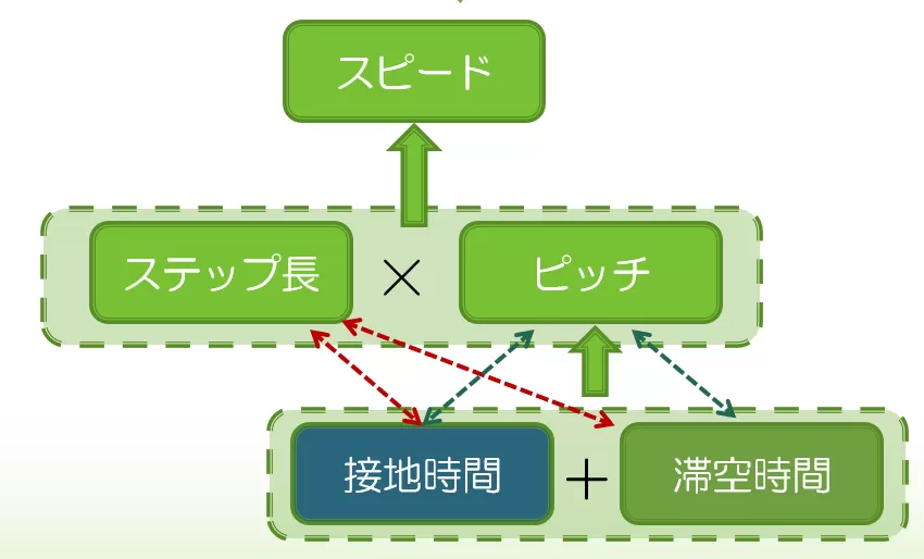 ステップ長を伸ばすための接地時間と滞空時間は、ピッチを減らしてしまうのです。
