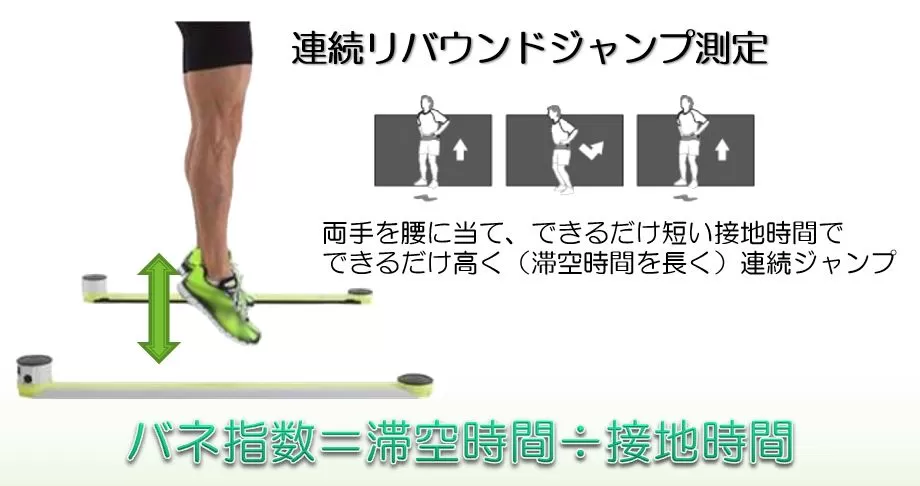このテストで「滞空時間÷接地時間」で得られるバネ指数というものを計算して出します。