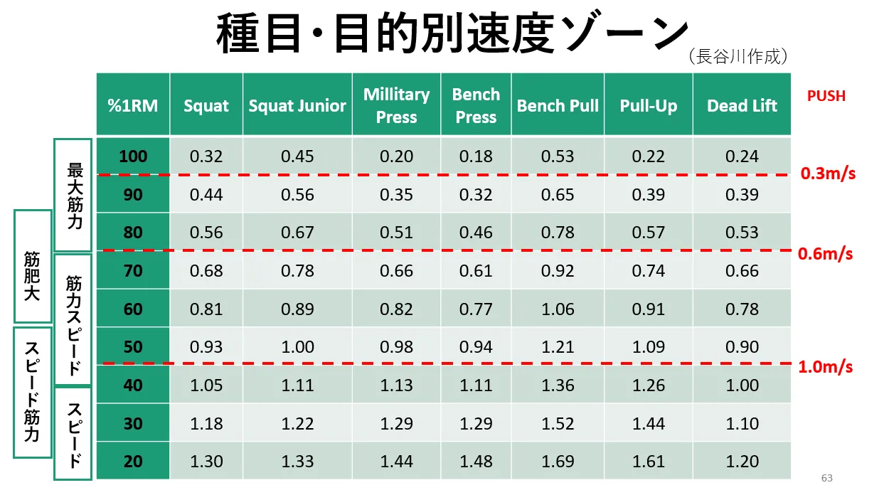 こうした結果から、速度低下によるカットオフを使用することで目標から大きく低下するレップを減らしたり、目的ゾーンの中でも高い速度で行える負荷に調整するなどの工夫を行います。