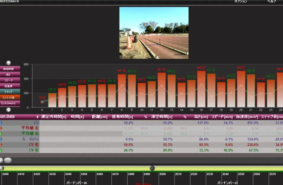 選手が今走ったその感覚を、即時にデータと照らし合わせることができるため、フォーム修正に非常に有効です。