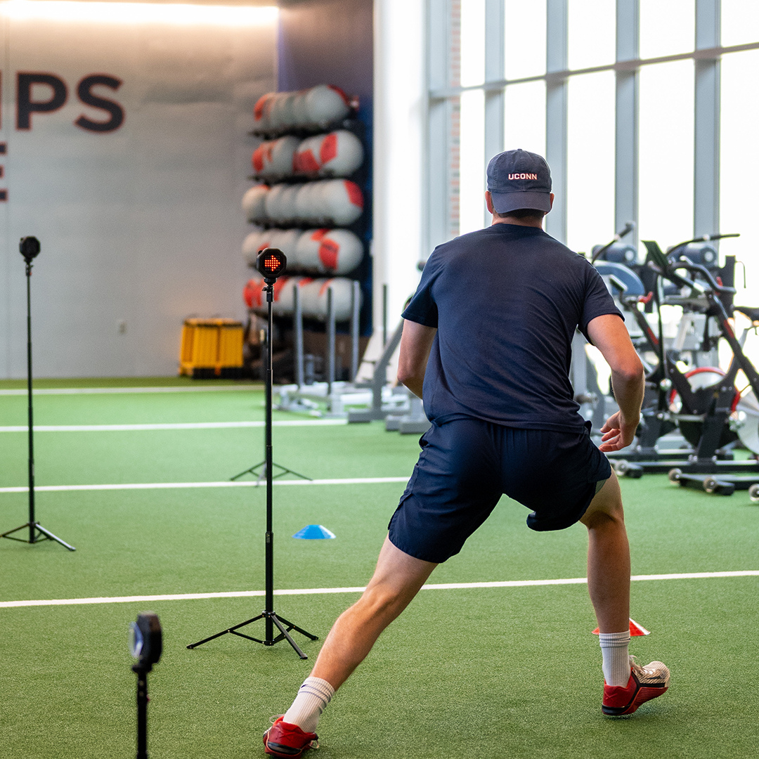 従来、CODとの対比で反応を伴ったアジリティーを研究するための測定では光刺激提示システムがよく用いられてきました。あらかじめ設定したタイミングで光るライト(LED)に反応して動作を開始したり変更したりするという方法です。先にも紹介したように、この方法によって得られたアジリティーテストの結果は、同じコース上のCODとは明らかに異なる結果を示し選手の能力を識別できるため、アジリティーを評価するには役立つとされてきました。しかし、最近の研究では、単に光刺激に反応するというのは実際の競技特性とは異なるため、それだけでは不十分ではないかとの指摘がなされています。