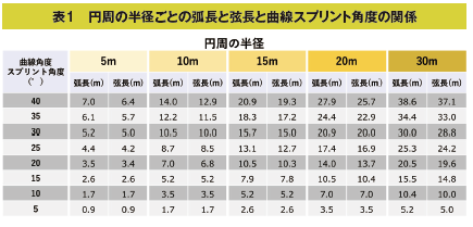 (1)曲線スプリントにおける距離と半径と角度
